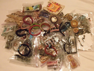 We also got a pile of free beading magazines, the Tucson catalogs, and my one personal indulgence - that beautiful South African handled basket.